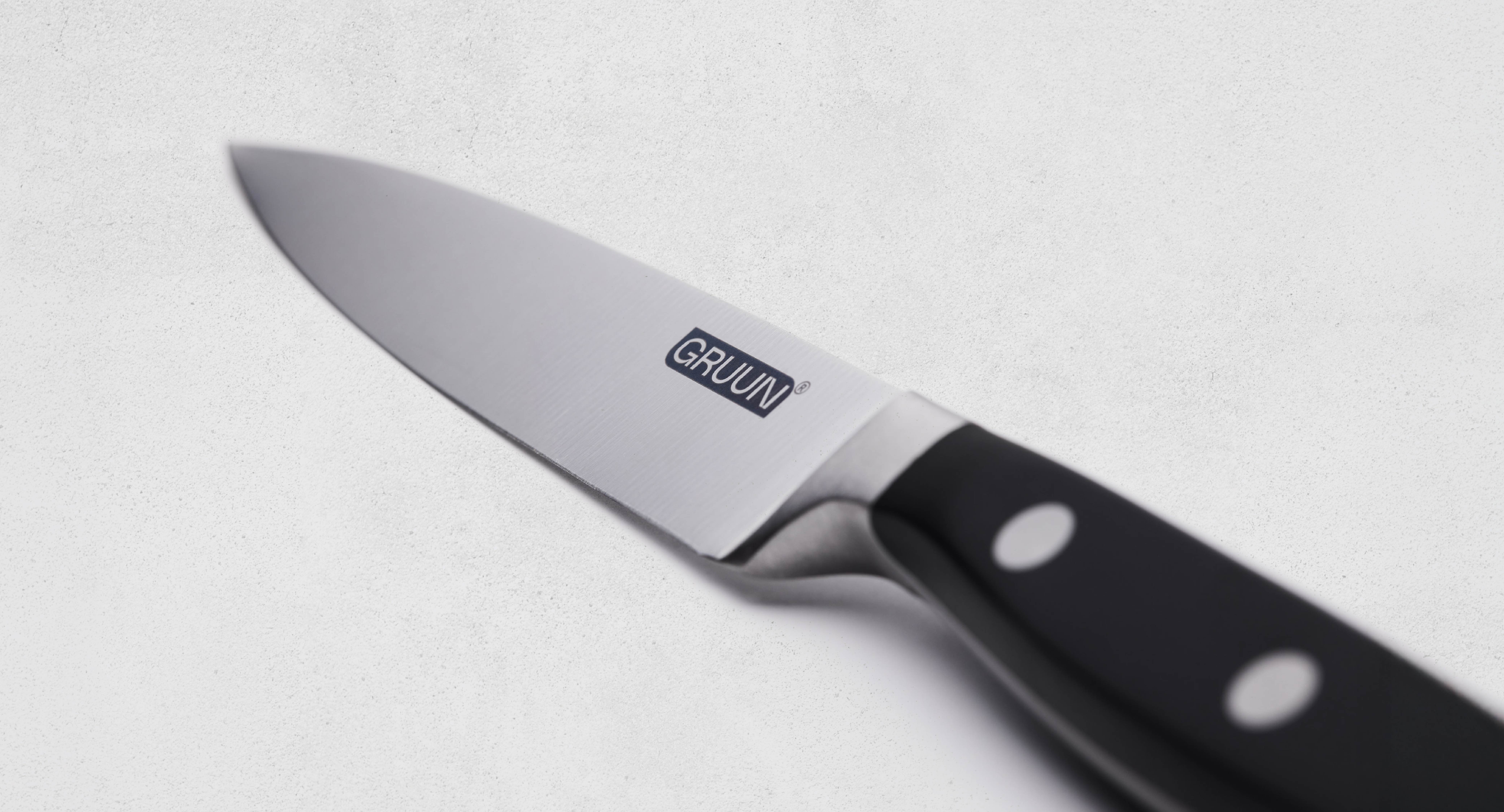 Een universeel mes voor meerdere snijklussen? Deze allrounder, gemaakt van gerecycled roestvrij staal, is een must have. Ook voor startende kookliefhebbers. Voor het snijden van vlees en vis in stukken en plakken, bloemkool en broccoli in roosjes, mango en meloen in schijven en het hakken van bossen kruiden bijvoorbeeld. Het lemmet is 12,7 cm lang, de totale lengte is 23,9 cm.Een verstandige keuze:Universeel. Voor alle snijwerkjes.Ideaal voor vlees, vis, groenten, fruit en kruidenGerecycled roestvrij staal X50CrMoV15Uit één stuk gesmeedVeilig. Stevige, ergonomische grip.HygiënischWas messen altijd met de hand, niet in de vaatwasserDe messen in de Essential Collection van GRUUN zijn perfect voor de bewuste thuiskok. Ieder mes van GRUUN is uitgebreid getest. Zo heb je jarenlang plezier van je keuze. Daarnaast kies je voor recycled staal en een plasticvrije verpakking. Een duurzamere keuze dus!